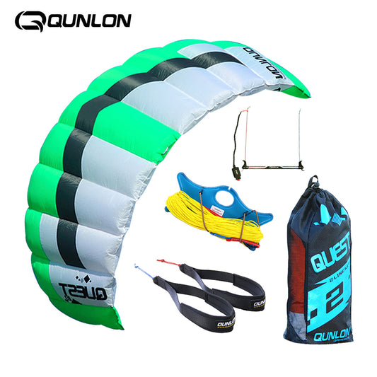 1.5sqm Power Traction Kites 2 x 20m x 220lb Flying Lines + Kite Wrist Strap + Bag