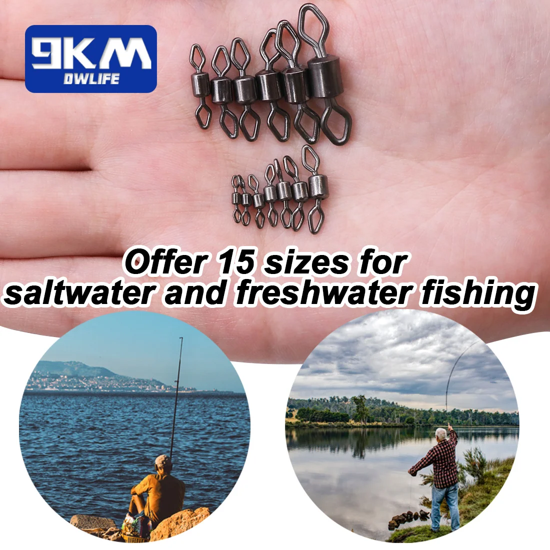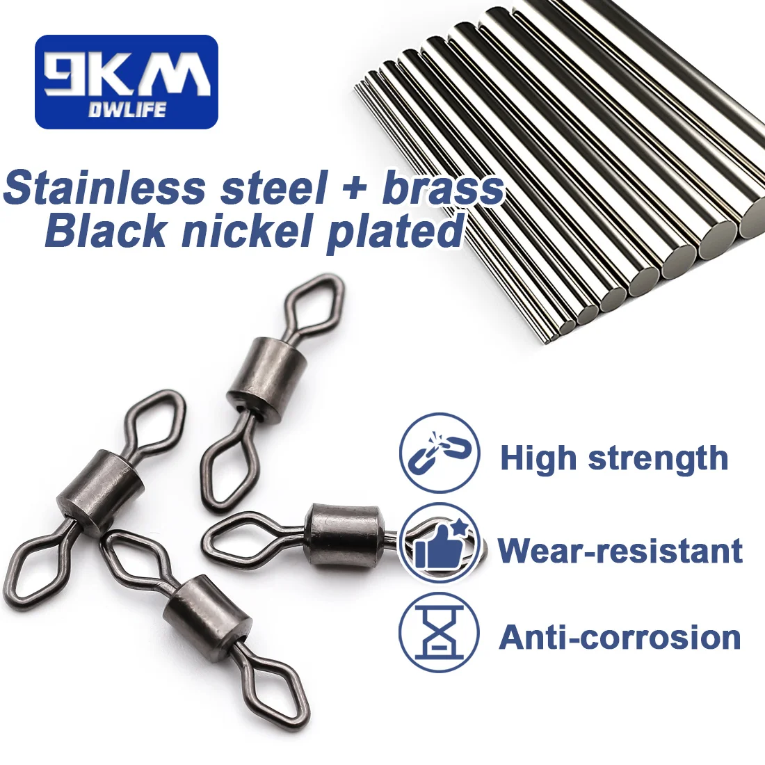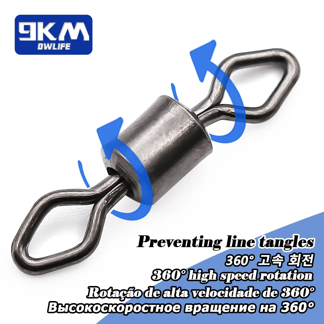9KM Swivels Fishing Tackle 25~100Pcs Stainless Steel Diamond Eye Rolling Swivels Fishing Solid Rings Connector Saltwater Fishing