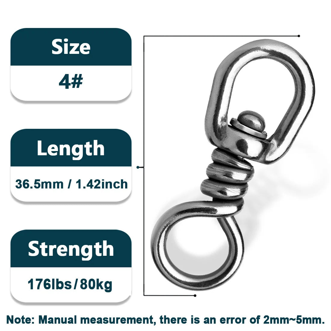 Corrosion Resistant:The surface of the swivels is treated with electro-oxidation to prevent the swivels from rusting. Approved for use in saltwater, high-speed trolling, jigging, and offshore fishing,surf fishing,etc.
