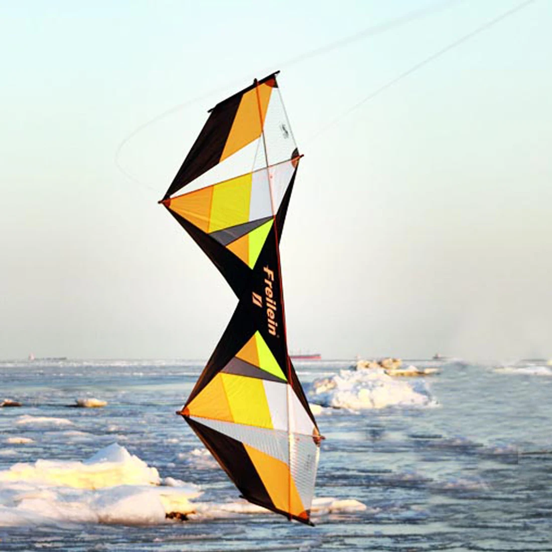 Four line kites let you control the angle of the wing to the wind and consequently, all of its flight characteristics: speed, direction and pull.