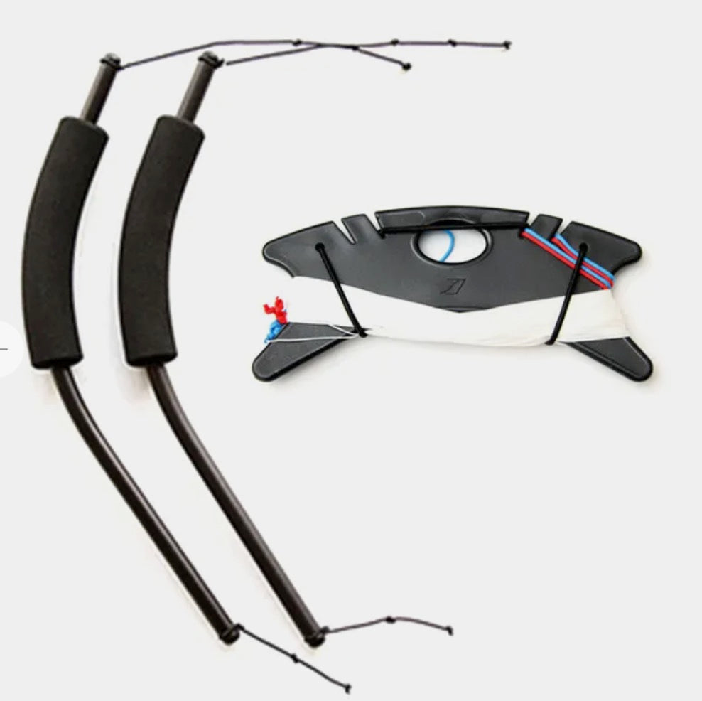 Four line kites let you control the angle of the wing to the wind and consequently, all of its flight characteristics: speed, direction and pull. Quad line kites can move forward or reverse, fly sideways, pivot on a wing tip, rotate on dead center or stop and hover in mid-air, at the speed you choose. Center pivot turns are done simply by making one side of the kite go forward and the other side backward. It’s possible to control the power of the kite just by changing its angle to the wind. The versatility of quad line kites makes them a great choice for team flying.