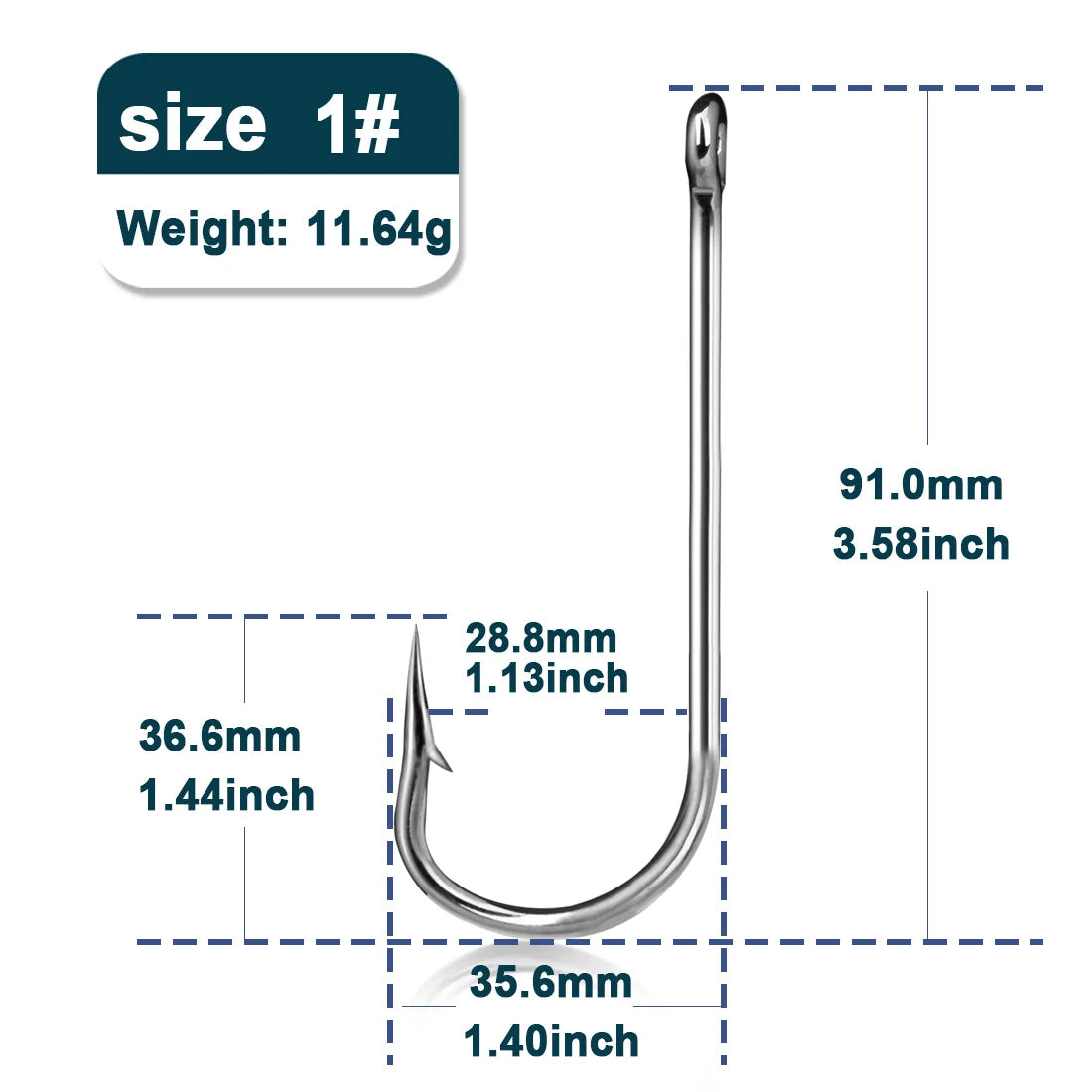 HIGH STRENGTH - Big game tuna fishing hooks are forged from high grade high-carbon steel for strength, anti corrosive properties and reliability.