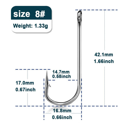 Siwash Hooks Saltwater Fishing Hooks 50~200Pcs Live Bait Hooks Heavy Duty Long Shank Fishing Aberdeen Hooks Catfish Bass Hooks