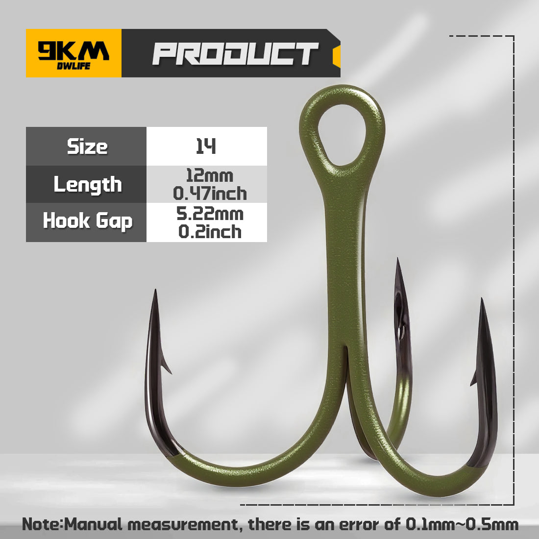 9KM treble hooks are made of high quality carbon steel with Chrome nickel plated coating on the surface,
