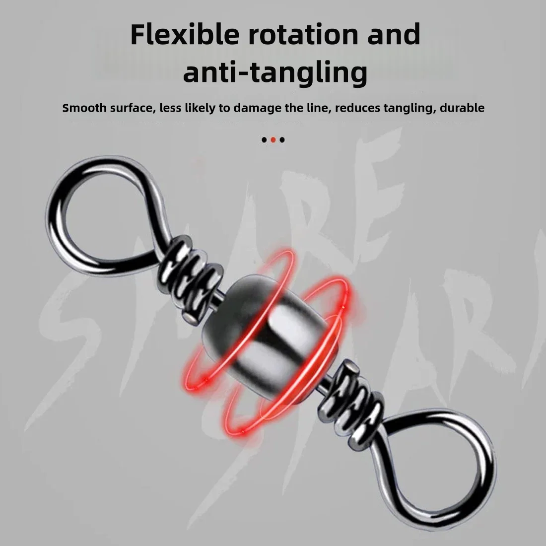 Rolling Swivel made of stainless steel and coated with black nickel coating, that provides superior strength and corrosion resistance.