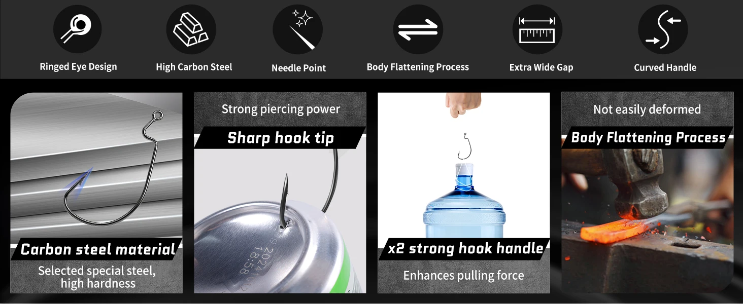 9KM EWG Bass Fishing Hooks are made from premium high carbon steel for superior strength and durability.