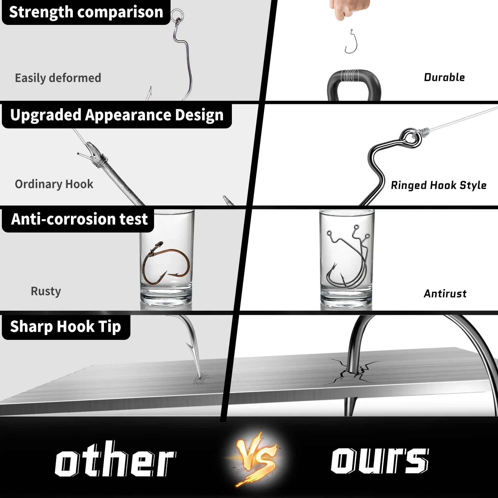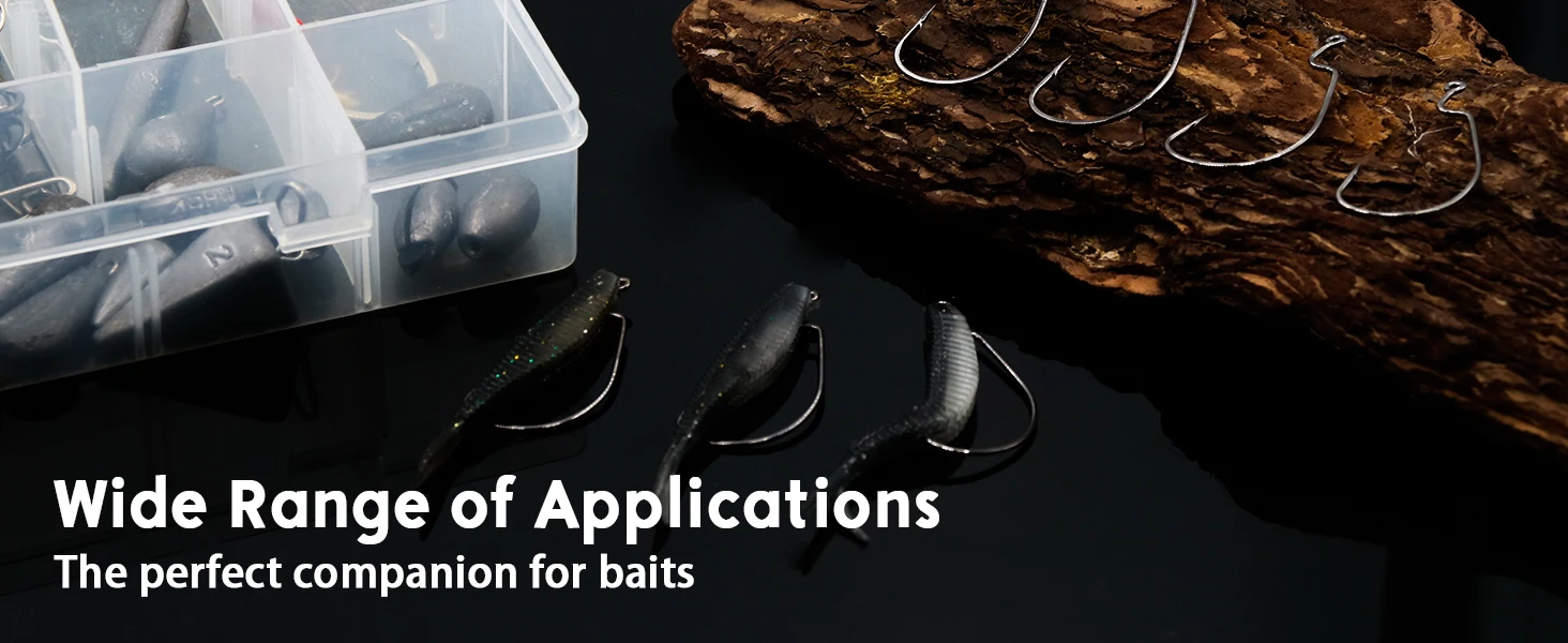 These closed eye and offset worm hooks are suitable for various fishing rigs such as texas rig,