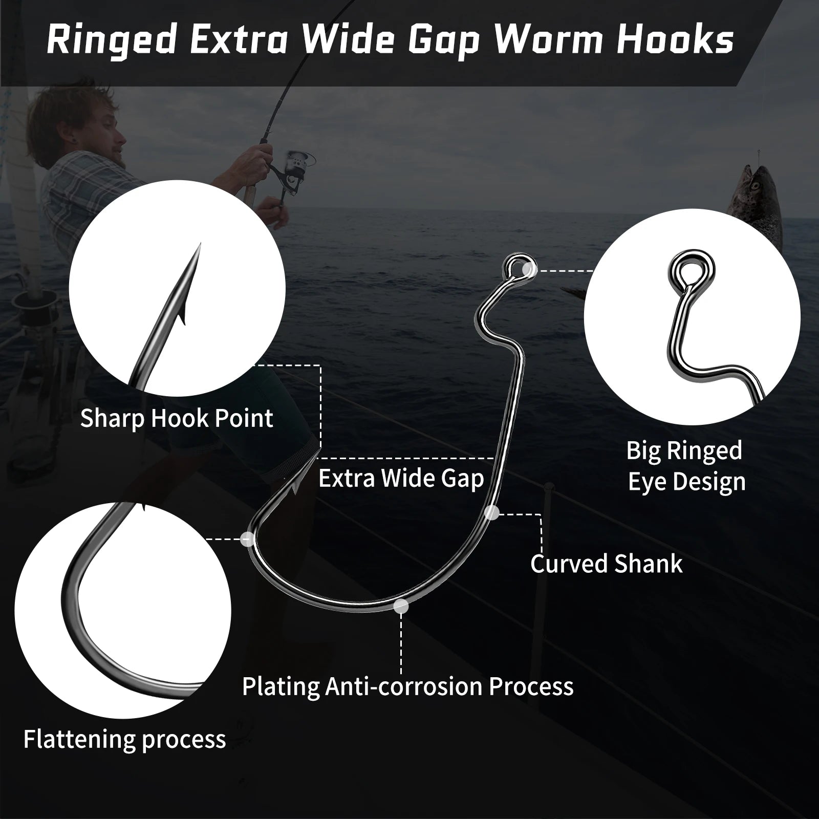 EWG Hooks for Bass Fishing, Offset Worm Hook Texas Rig Hooks