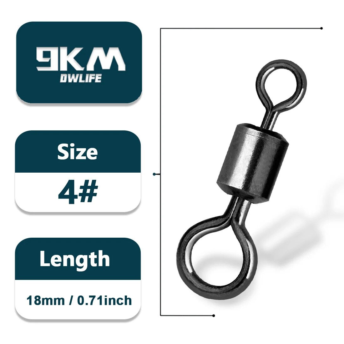 9KM Big Eye Swivels 30~60Pcs Carp Fishing Swivel Terminal Tackles Matt Black Carp Fishing Rolling Swivel Solid Rings Connector