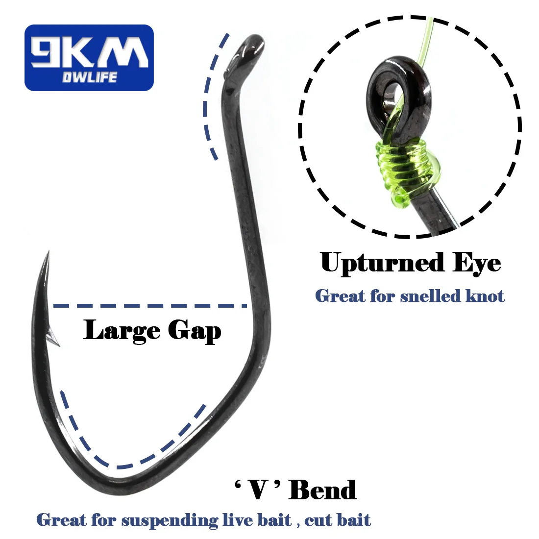 Superior Quality:9KM fishing hooks are designed with high carbon steel, black nickel coating to withstand the toughest catfish battles in rivers and surf fishing.With anti-corrosion properties,these fishing hooks ensure durability and longevity.