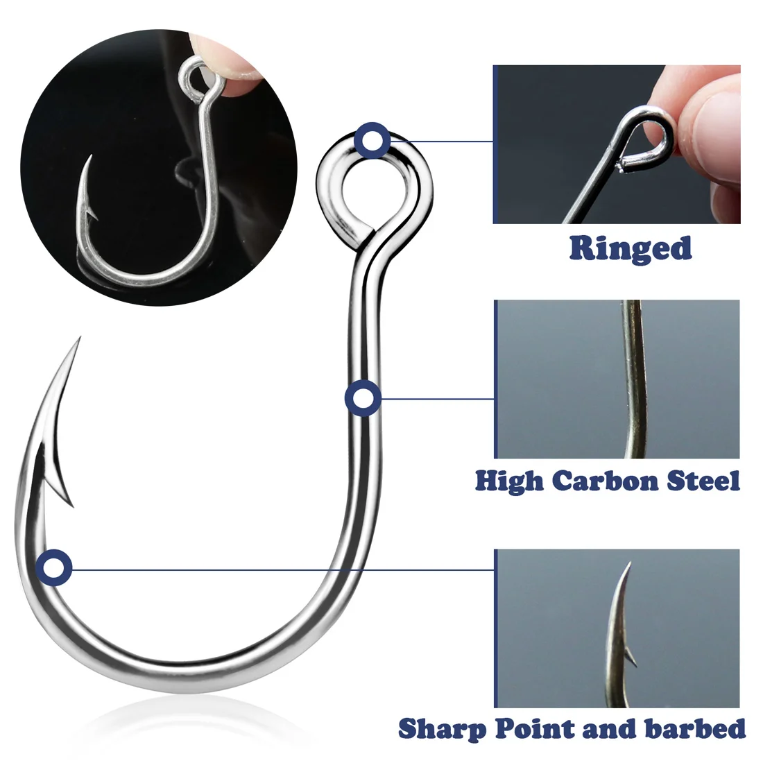 【Sharp and Durable】FishTrip inline fishing hooks are made of high carbon steel, which has higher strength and better corrosion resistance. The hooks have sharp points and barbs, which can prevent fish from escaping while having strong penetrating power. Suitable for freshwater,saltwater,rivers and lakes.
