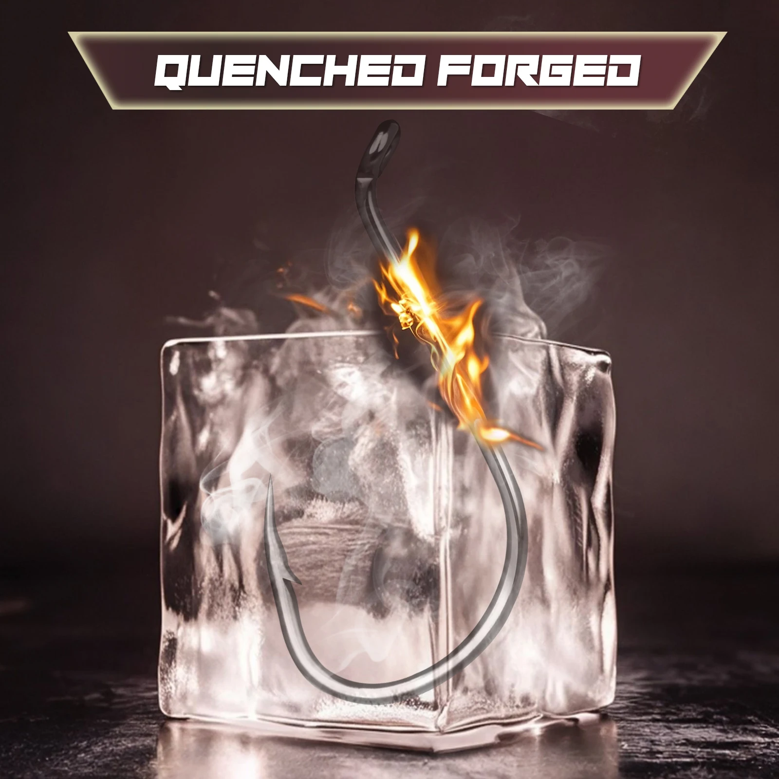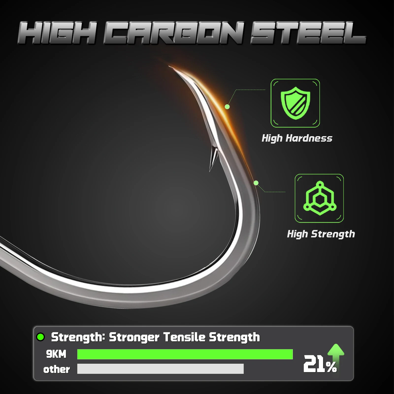 These octopus hooks are made from high carbon steel, ensuring maximum strength and resistance to bending or breaking during intense fishing sessions.