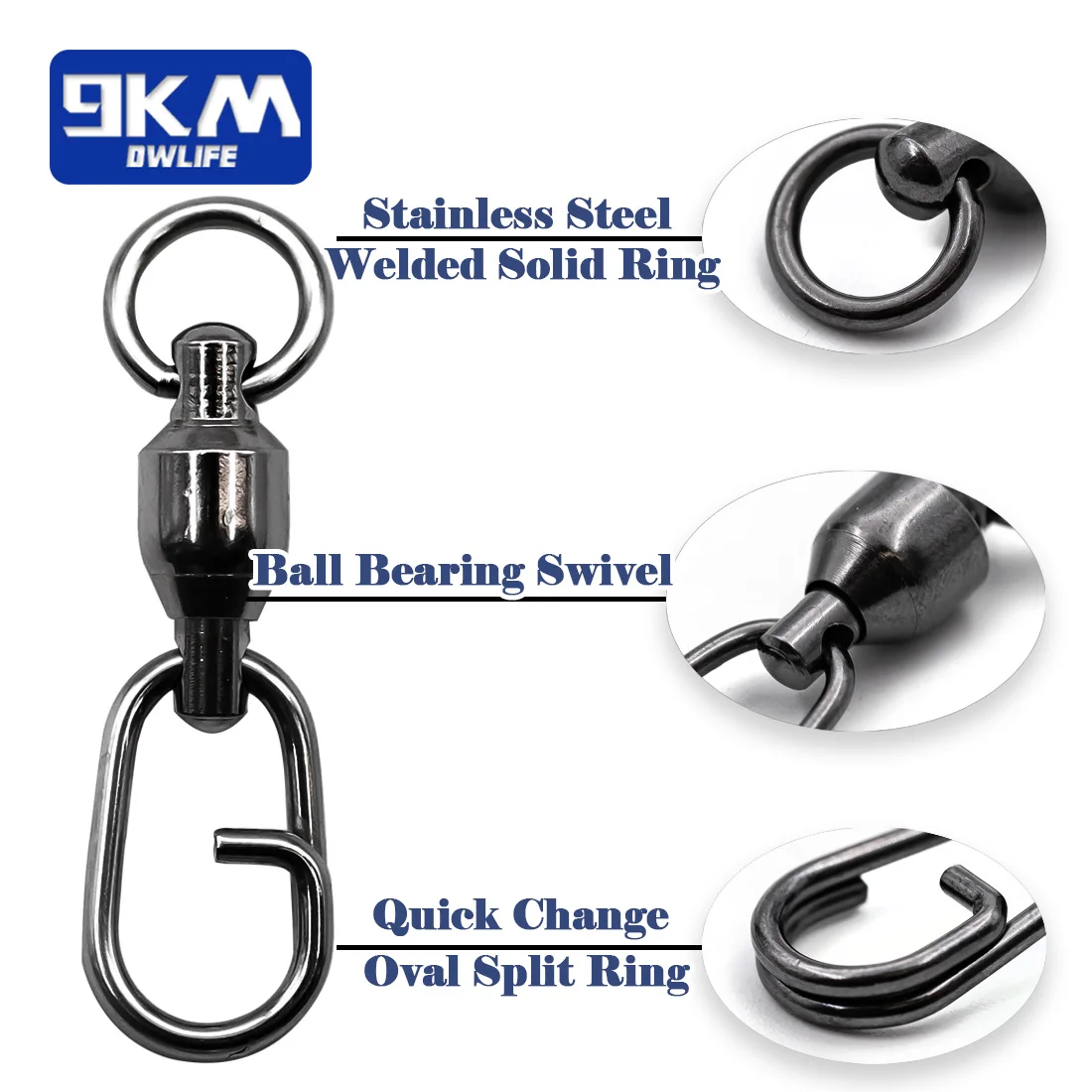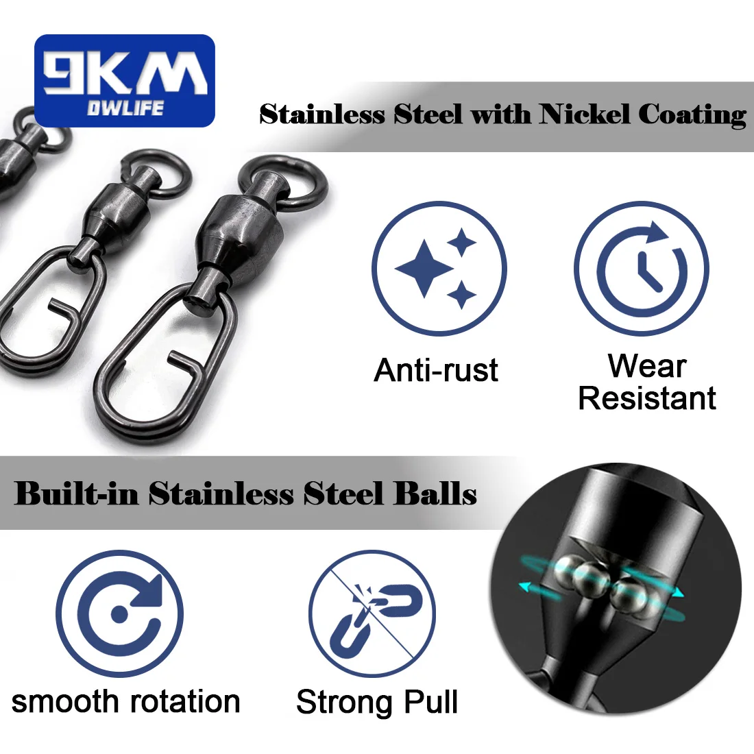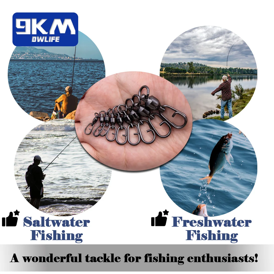 [Excellent Material] 9KM DWLife Fishing Ball Bearing Swivels are made of premium brass and stainless steel.Fishing swivels can be used for extended periods of time in saltwater.