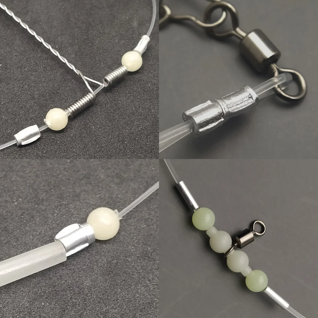 [GOOD APPLICATION]: Nice for making trolling and bottom fishing rigs. They held up well if you use on duck decoy lines. Crimp sleeves help secure the fishing beads on the line. No more concern on loosen hook. Suitable for creative fishing line set design according to different fishing situation.