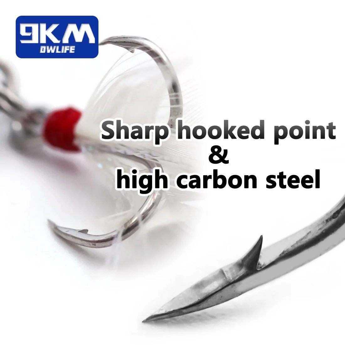 【Sharp Hooks】: Hand-tied bucktail trailer that produces fish-tempting undulations. And the rear treble hooks with ultra-sharp conical points that bite deep and hold hard, allow for quicker penetration and rock solid hooksets on any predator that bites.