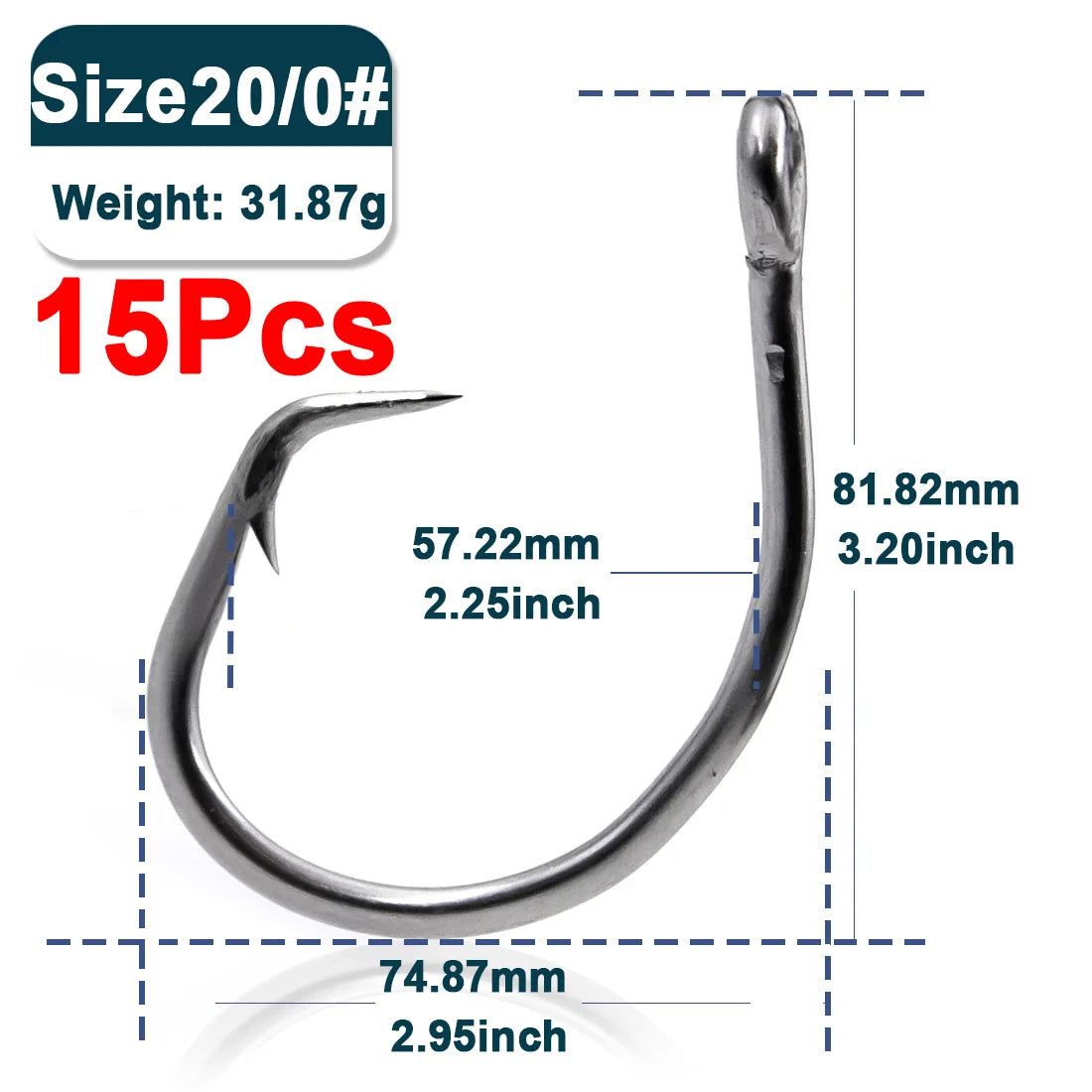 The Super Giant Fishing Hook Circle Hook is meticulously engineered to meet the rigorous demands of saltwater fishing for colossal species like tuna and other giant fish. Crafted from high-quality stainless steel, this 9KM Perfect Circle Hook features a special radian bend and uniquely designed barbs that provide unmatched performance and reliability.