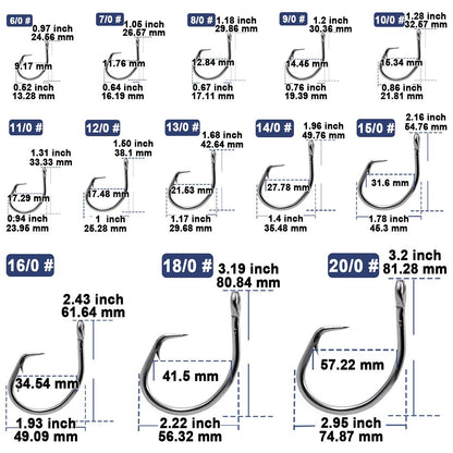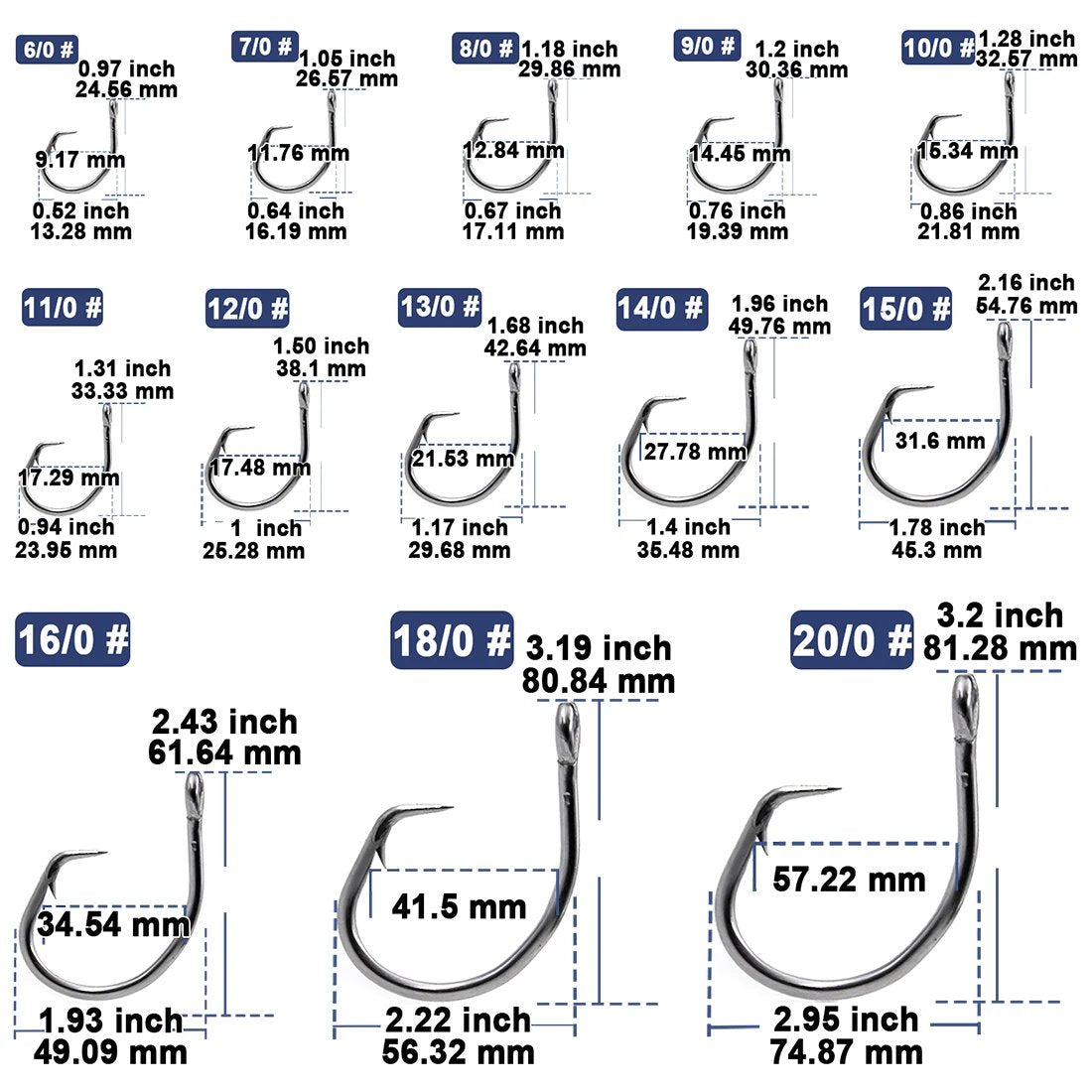 【Multiple sizes】9KM offers 15 different sizes to satisfy you to catch different size of fish. Including 6/0~28/0 Please check the size chart before purchasing to ensure you purchase the correct size.