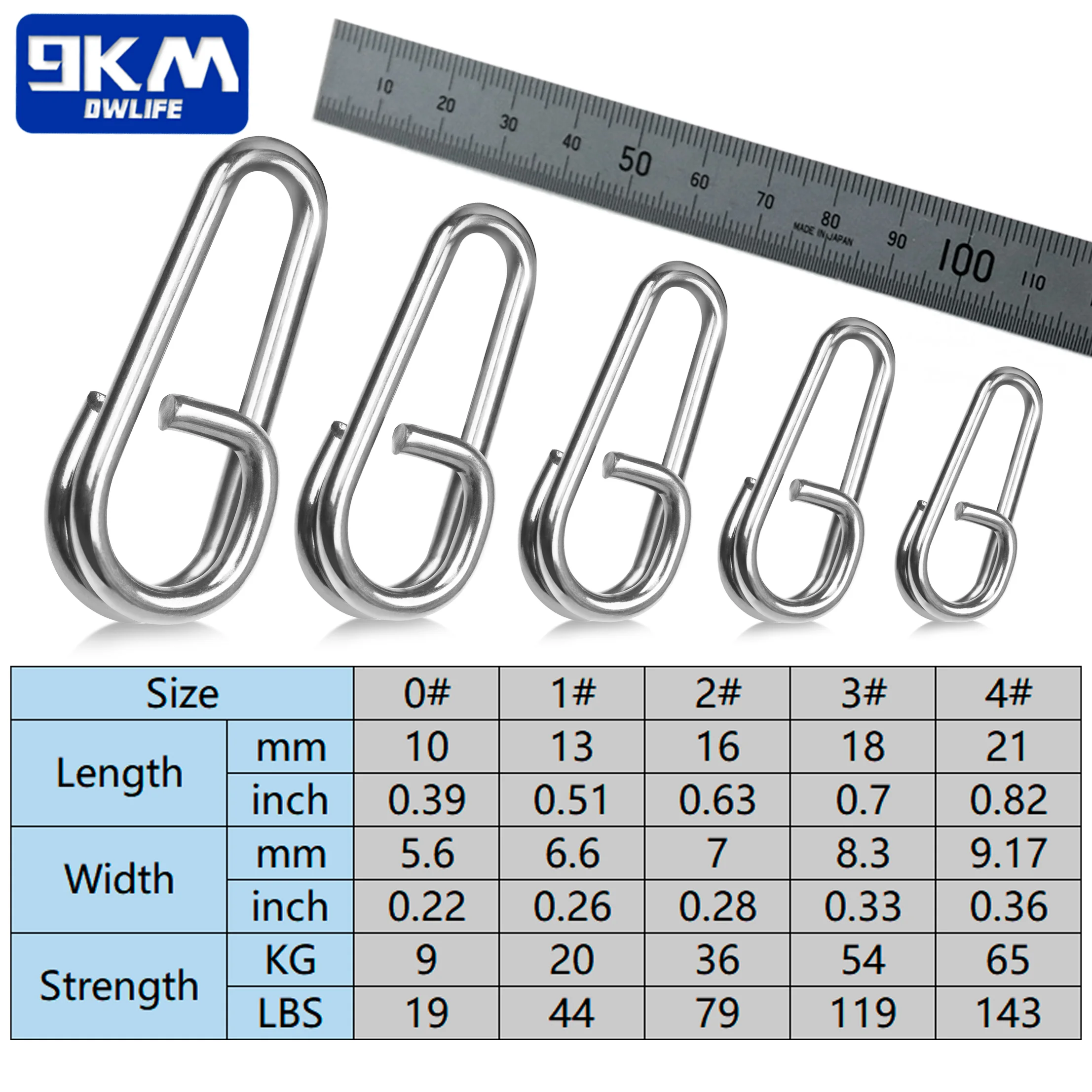 Multi Sizes for Your Fishing: We provide multi sizes for your choice.And the strength of these would be different from 9kg to 65kg.The variety of sizes are available,the length are from 10mm to 21mm.These sizes would meet your needs for different usages.Please confirm your suitable sizes of fishing split ring before purchasing it.