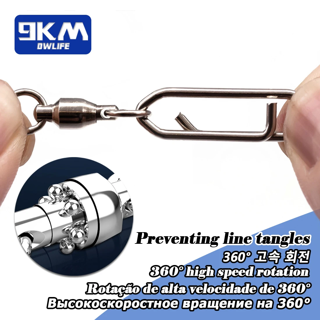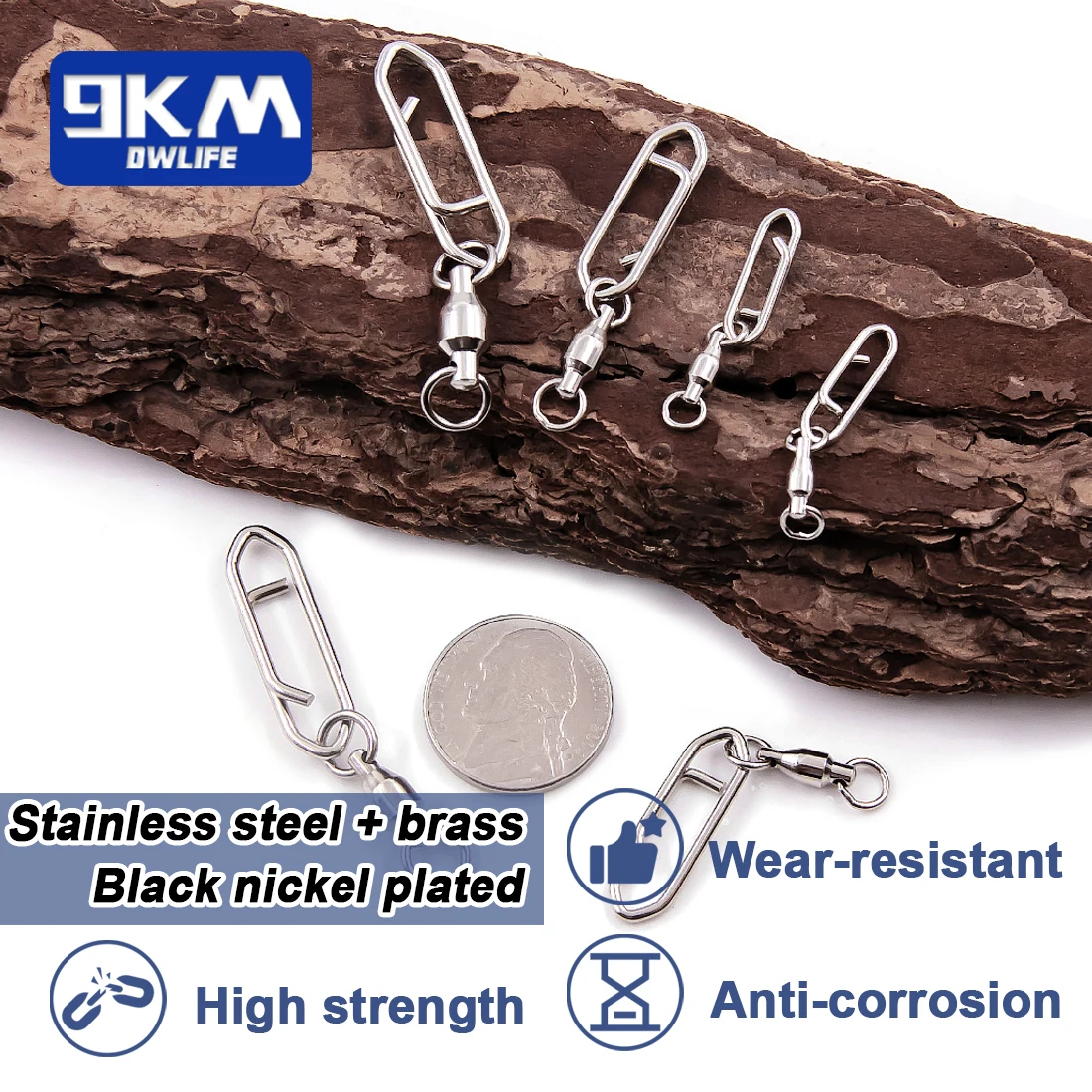 Excellent Material:9KM Fishing Ball Bearing Swivels are made of premium brass and stainless steel.Black chrome plated before assembly.Fishing swivels can be used for extended periods of time in saltwater.